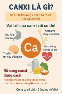 Canxi là một khoáng chất giữ vai trò quan trọng trong cơ thể con người .Trong cơ thể người, thành phần cơ bản cấu tạo nên xương và răng là canxi kết hợp với phospho, làm cho xương và răng chắc khỏe. Ngoài ra, canxi còn cần cho quá trình hoạt động của thần kinh cơ, hoạt động của tim, chuyển hoá của thế bào và quá trình đông máu.